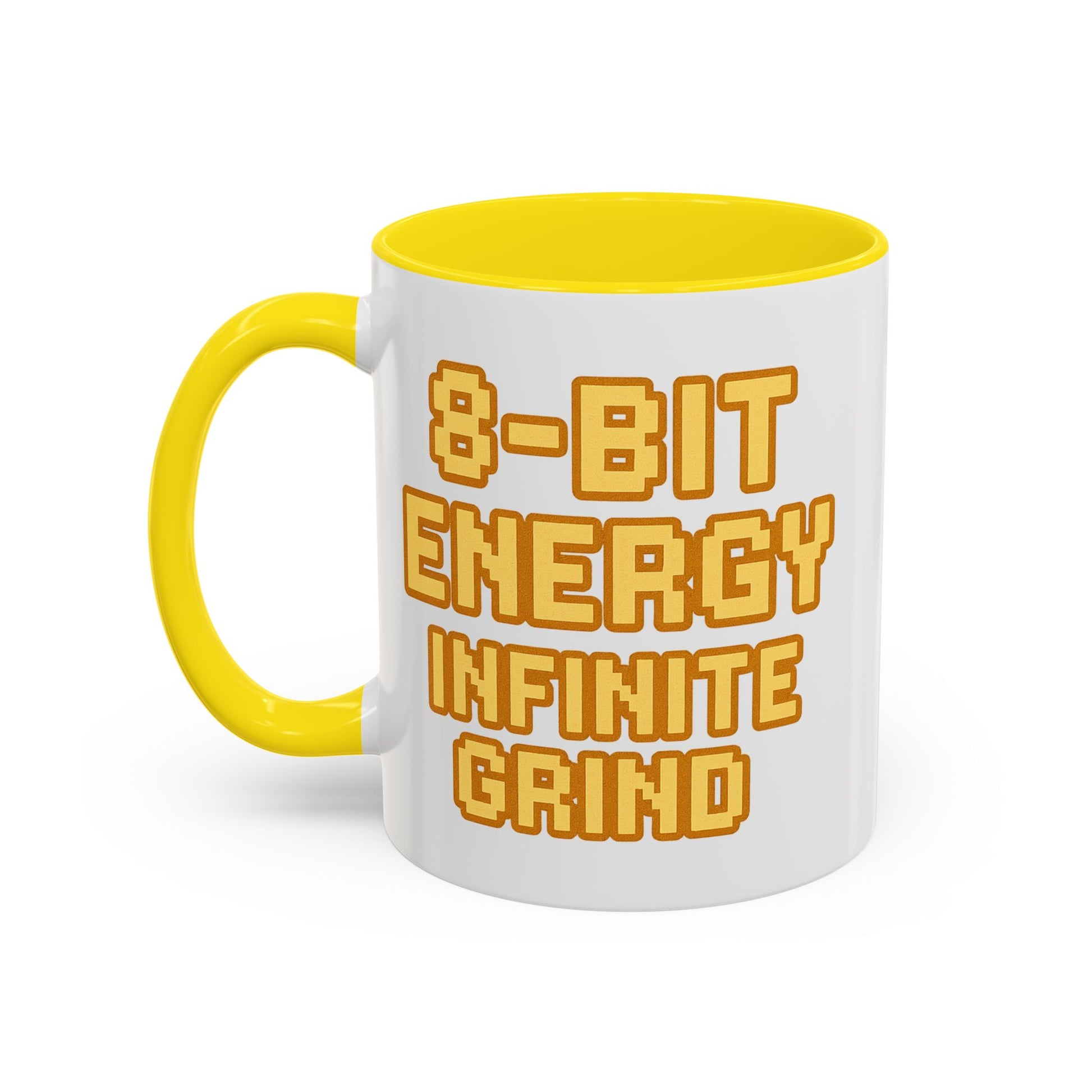 Introducing the 8-Bit Energy Infinite Grind, a vibrant Accent Coffee Mug perfect for the gamer in your life! This stylish mug brings an energetic vibe to your favorite space, making mornings brighter and coffee breaks more exciting.