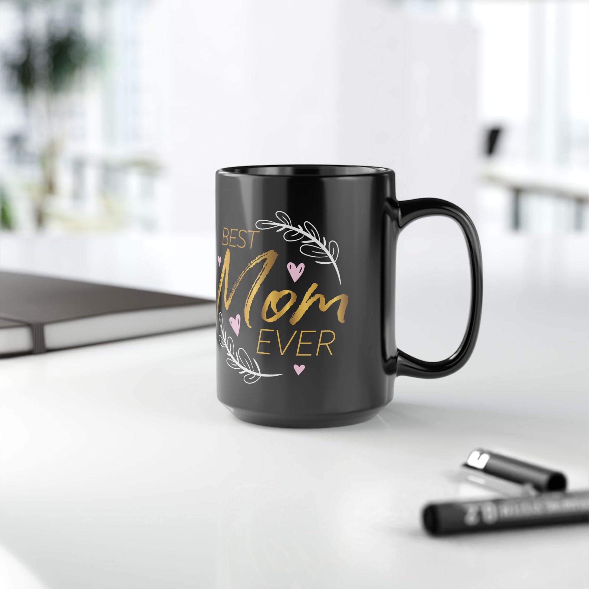 Best Mom Ever on Black 11 oz Coffee Mug - Great gift for the coffee lover
