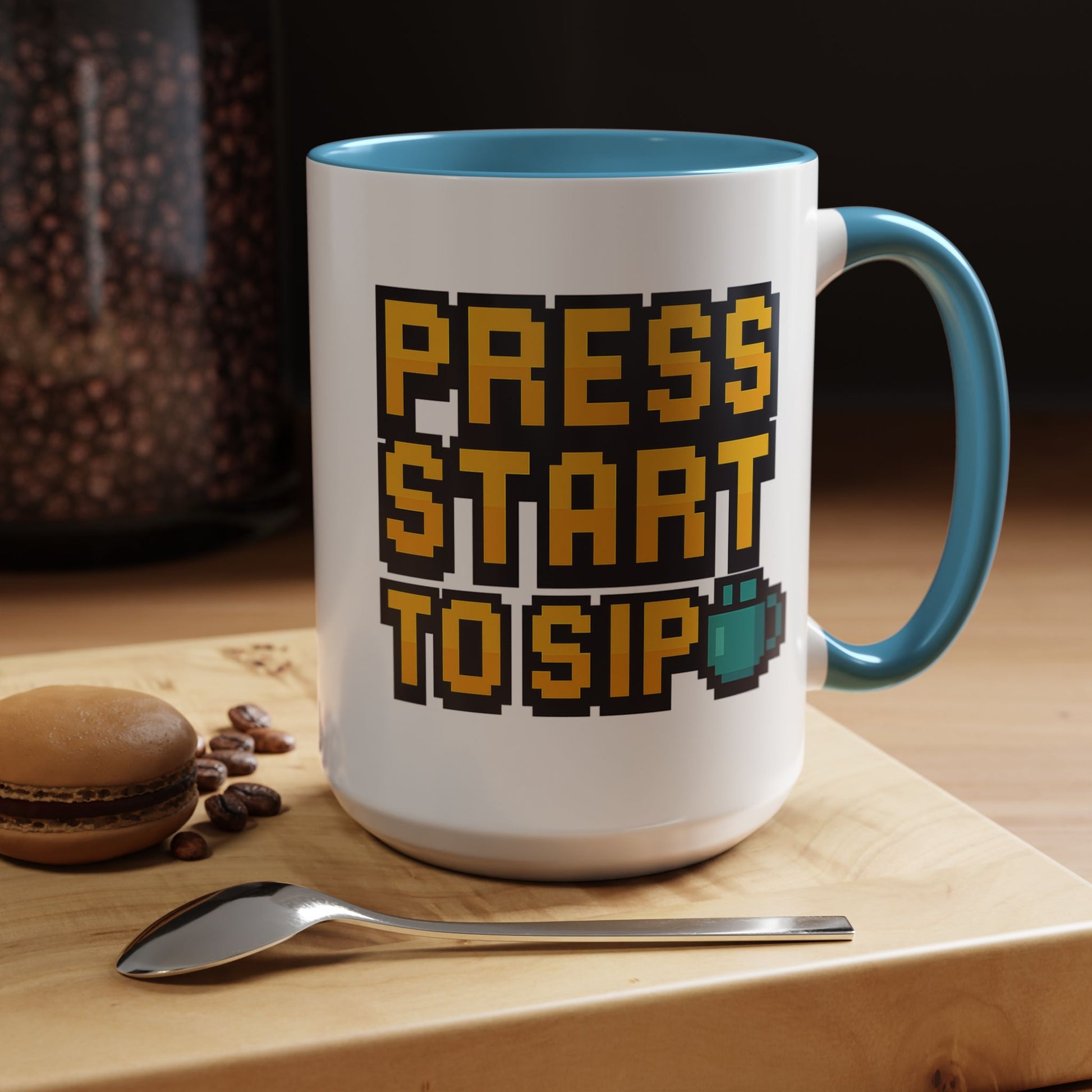 Introducing the Gamer Coffee Mug, Press Start To Sip, a perfect accent piece to elevate your daily coffee ritual. This unique mug features a vibrant design that instantly catches the eye, making it a standout addition to your kitchen.
