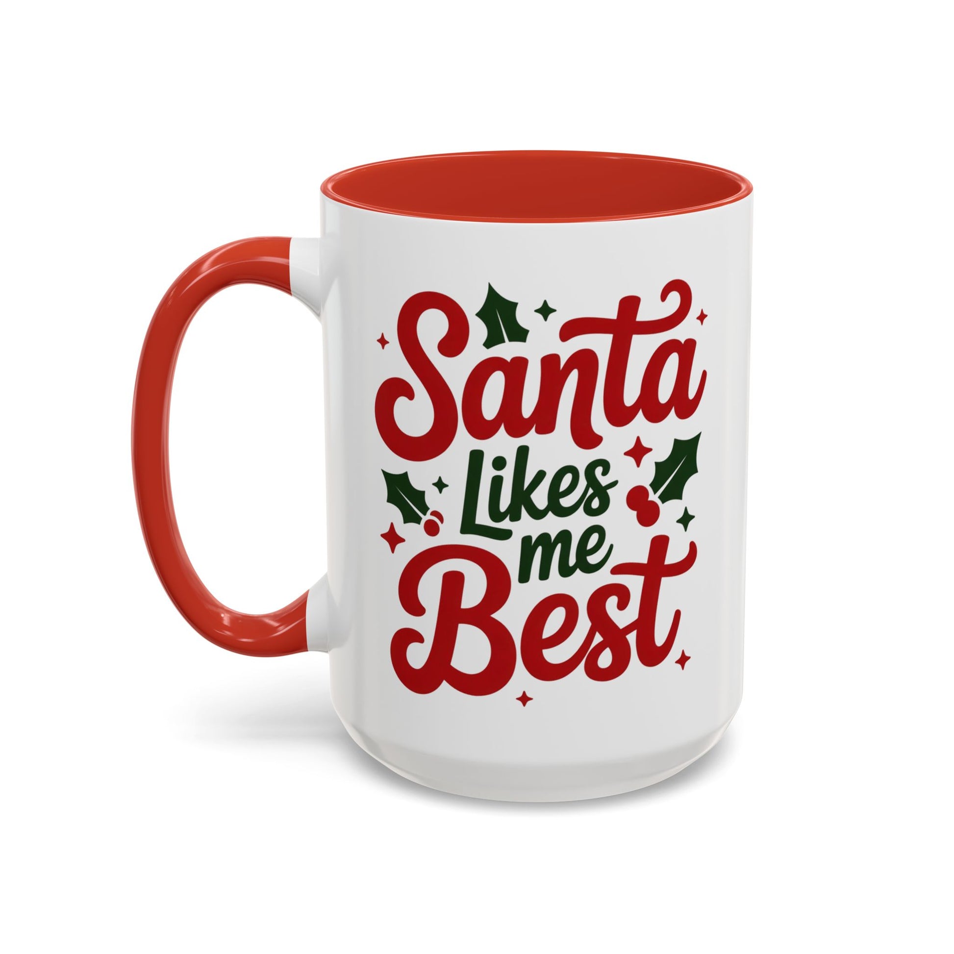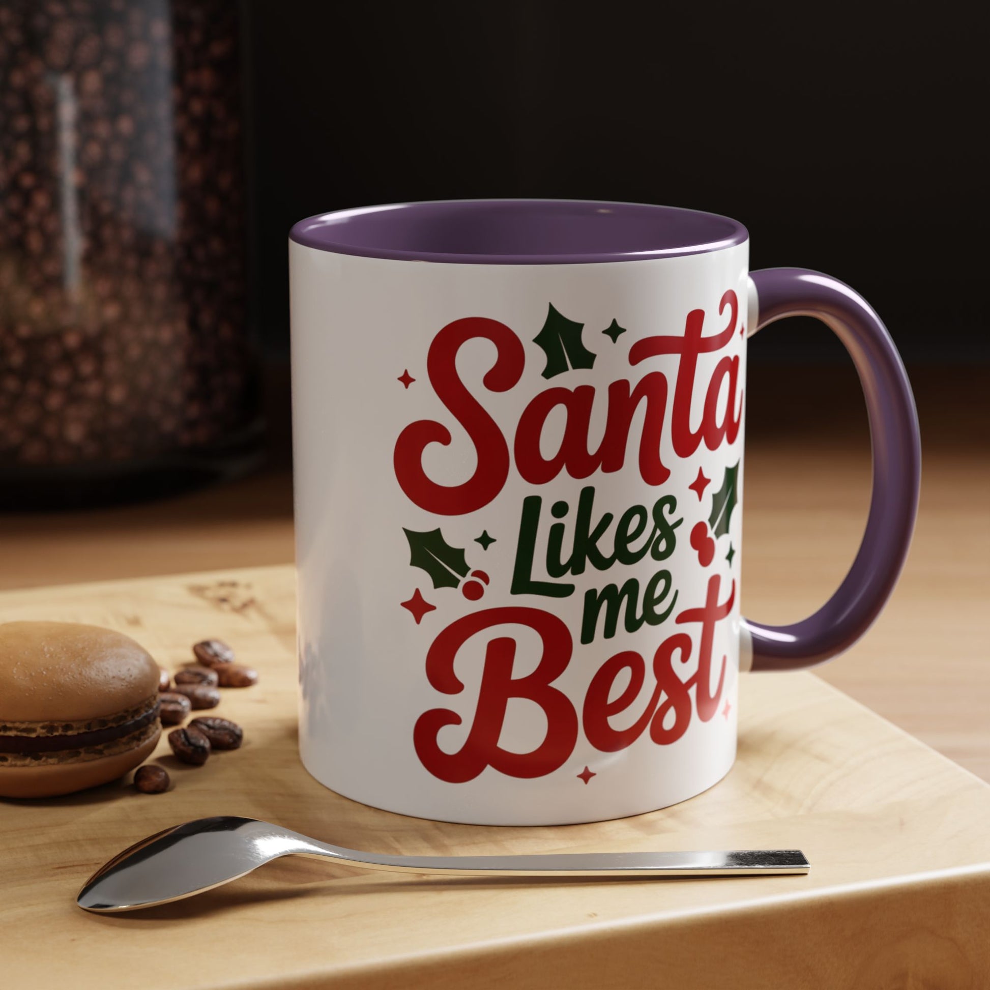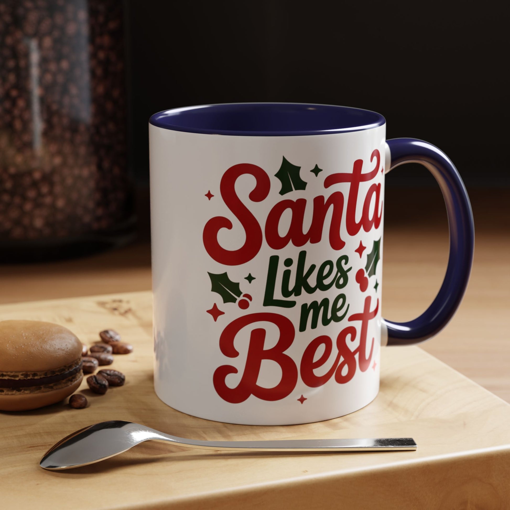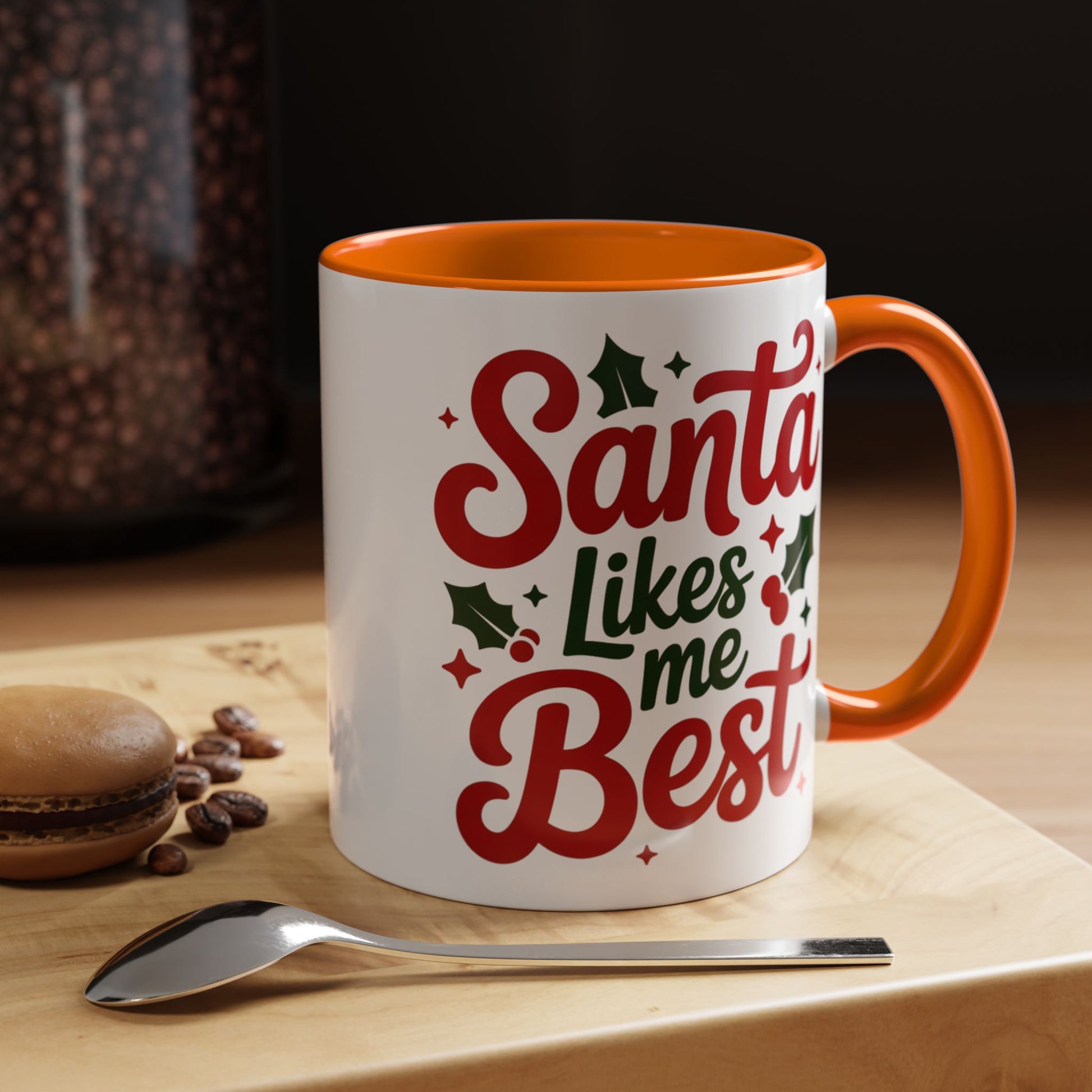 Start your day with a smile with the Santa Likes Me Best Accent Coffee Mug. This vibrant mug is perfect for coffee enthusiasts and tea lovers alike, adding a cheerful touch to your kitchen or office.