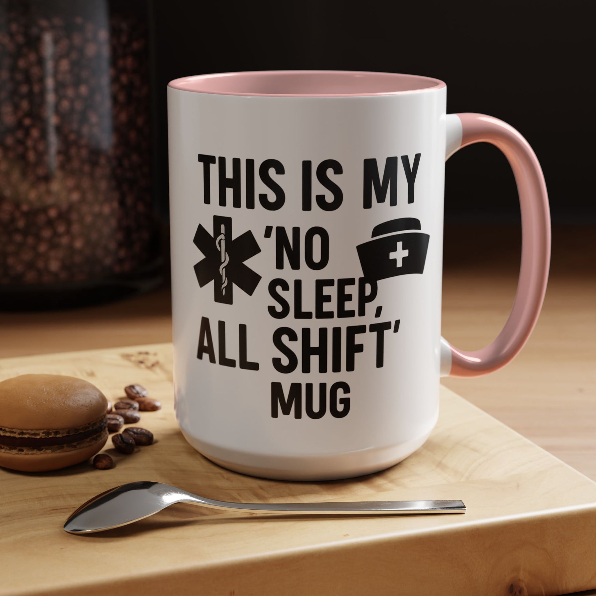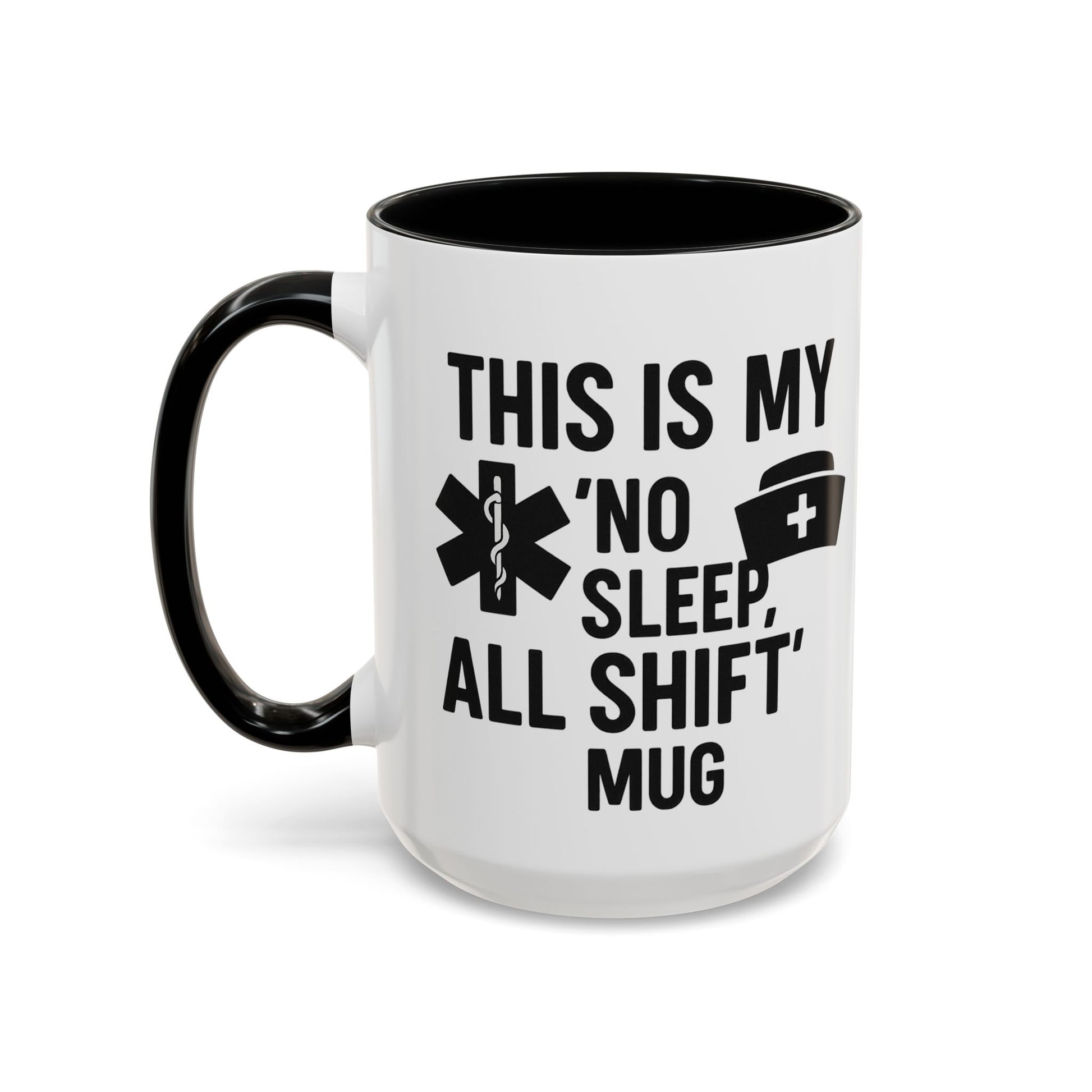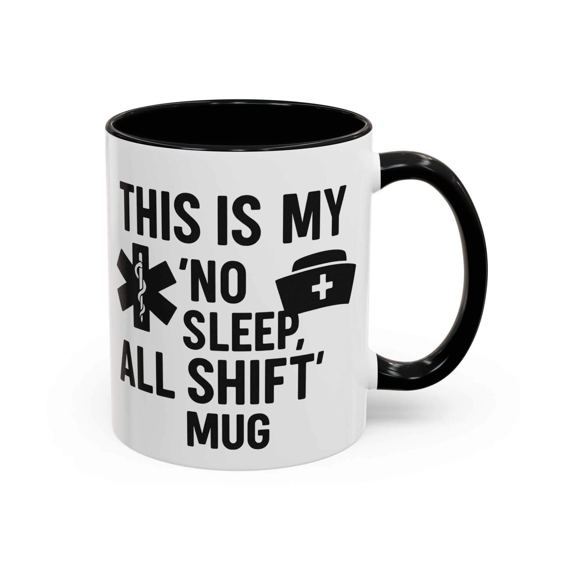 This Is My No Sleep All Shift Mug, Gift for Healthcare Workers, Black Accent Mug, Funny Nursing Gift