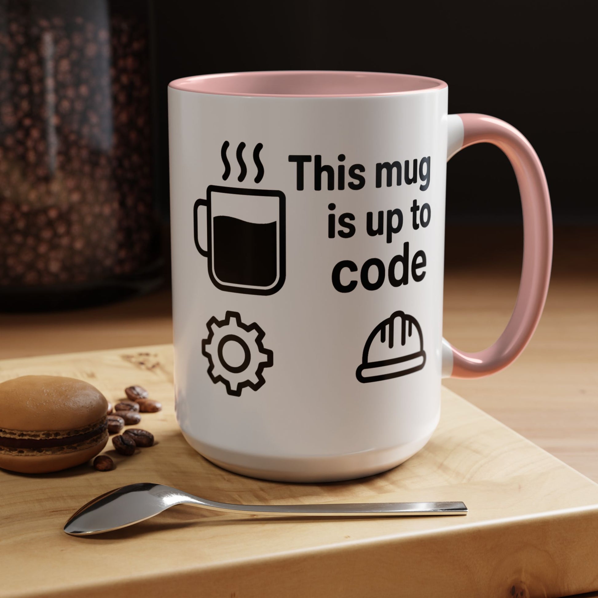 This Mug is Up To Code is the perfect gift for engineers, plumbers, contractors, and builders. Elevate your morning routine with this Accent Coffee Mug, designed for coffee lovers and professionals alike.