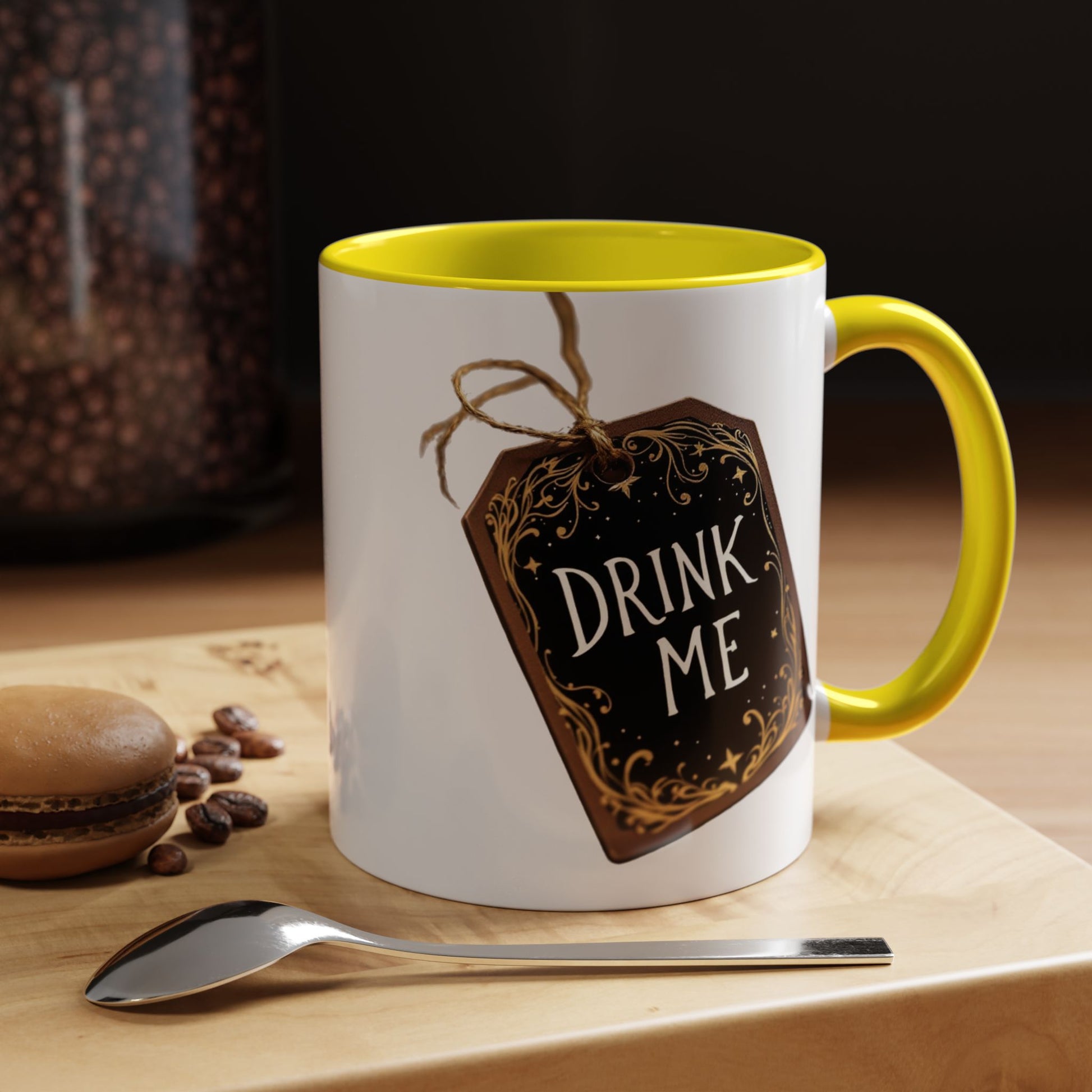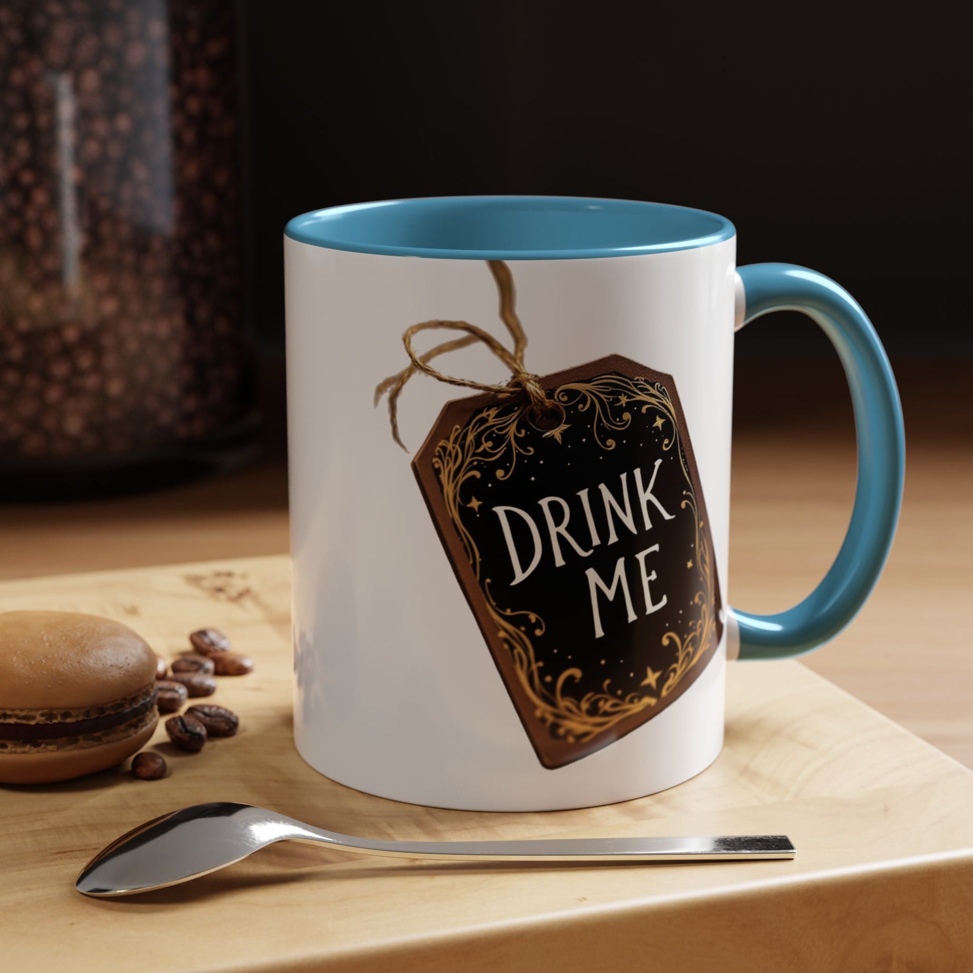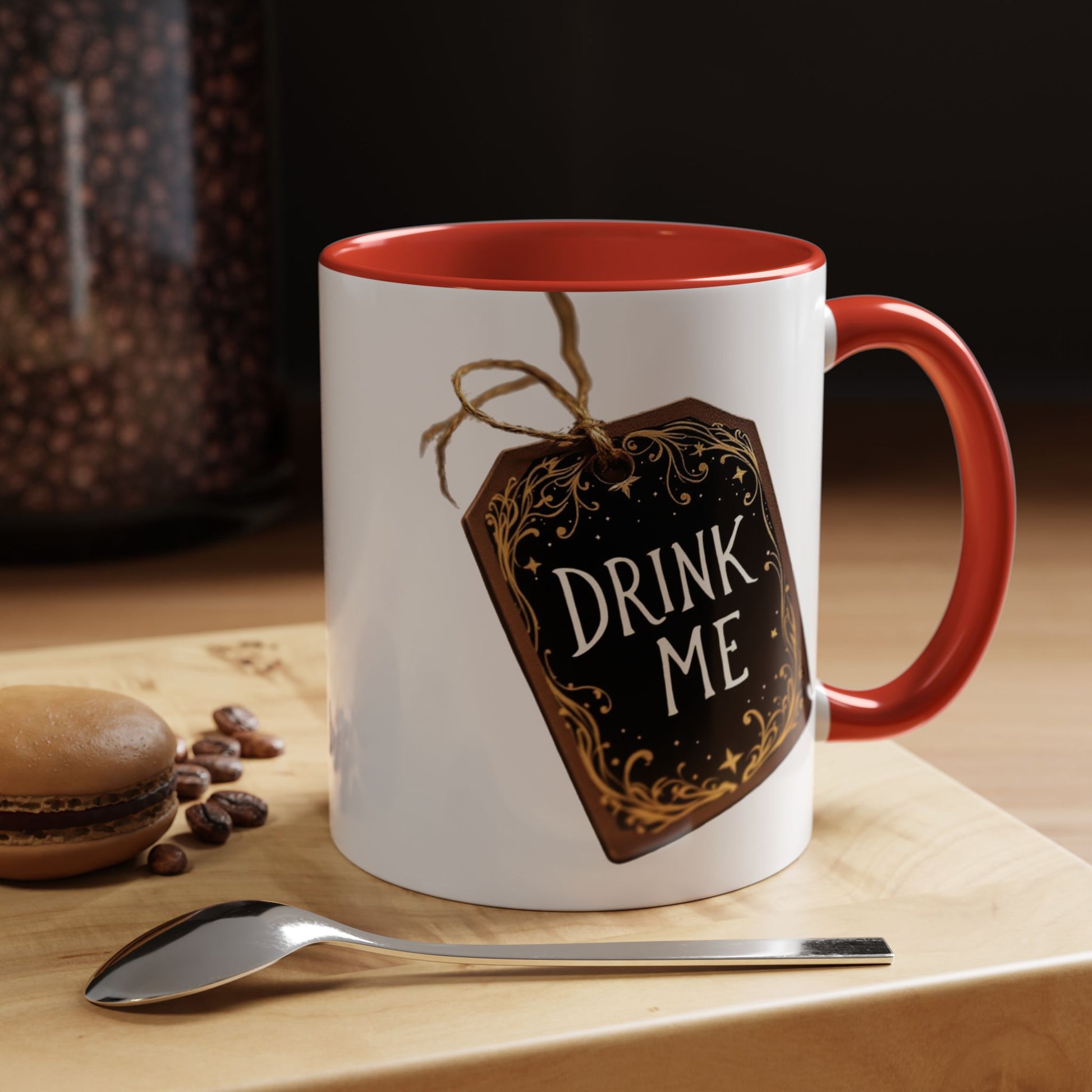 Introducing the Whimsical Drink Me Coffee Mug - Enchanting Accent Cup for Tea Lovers, where every sip becomes a delightful experience. This vibrant mug features a playful `Drink Me` tag, adding a touch of magic to your morning coffee or evening tea.