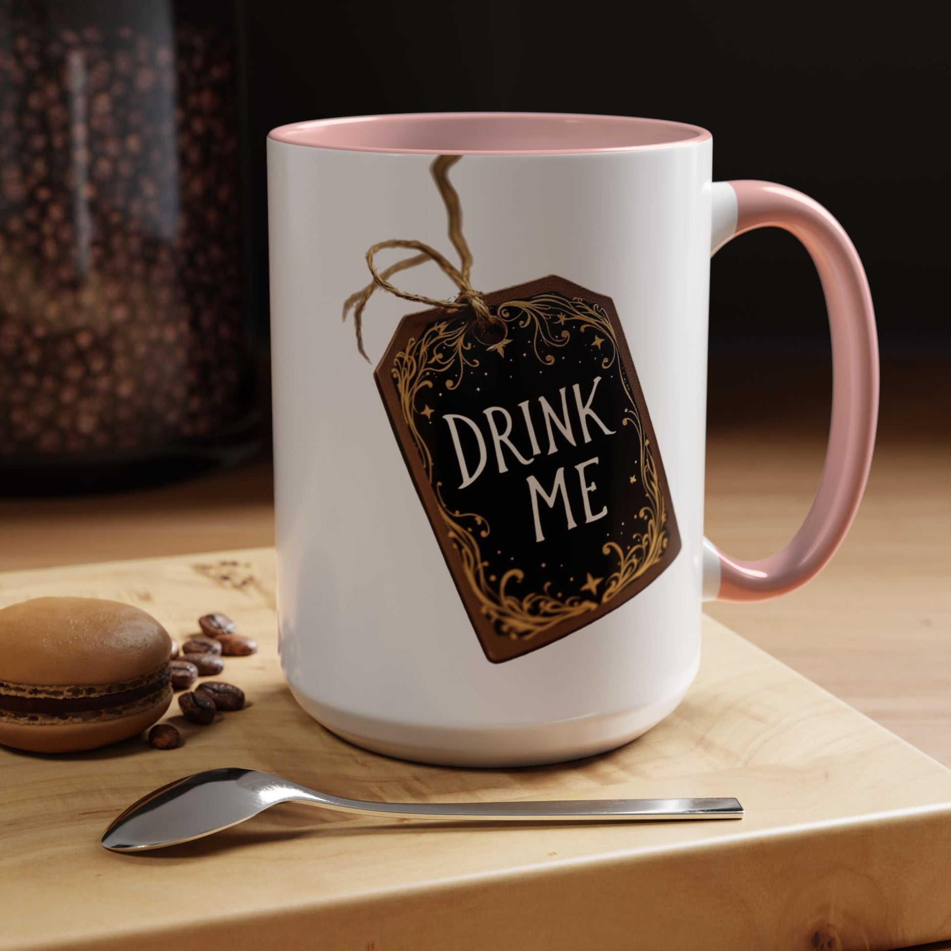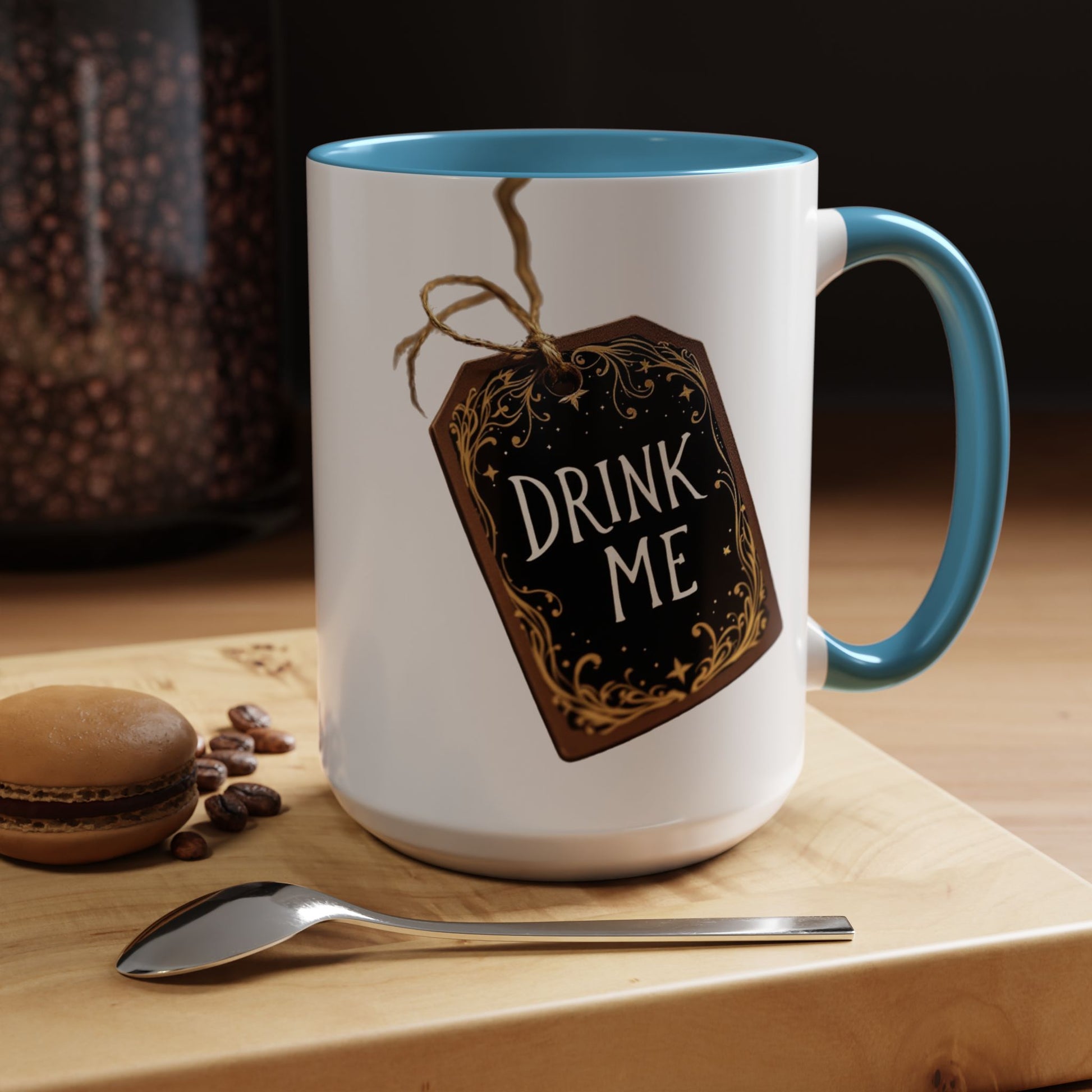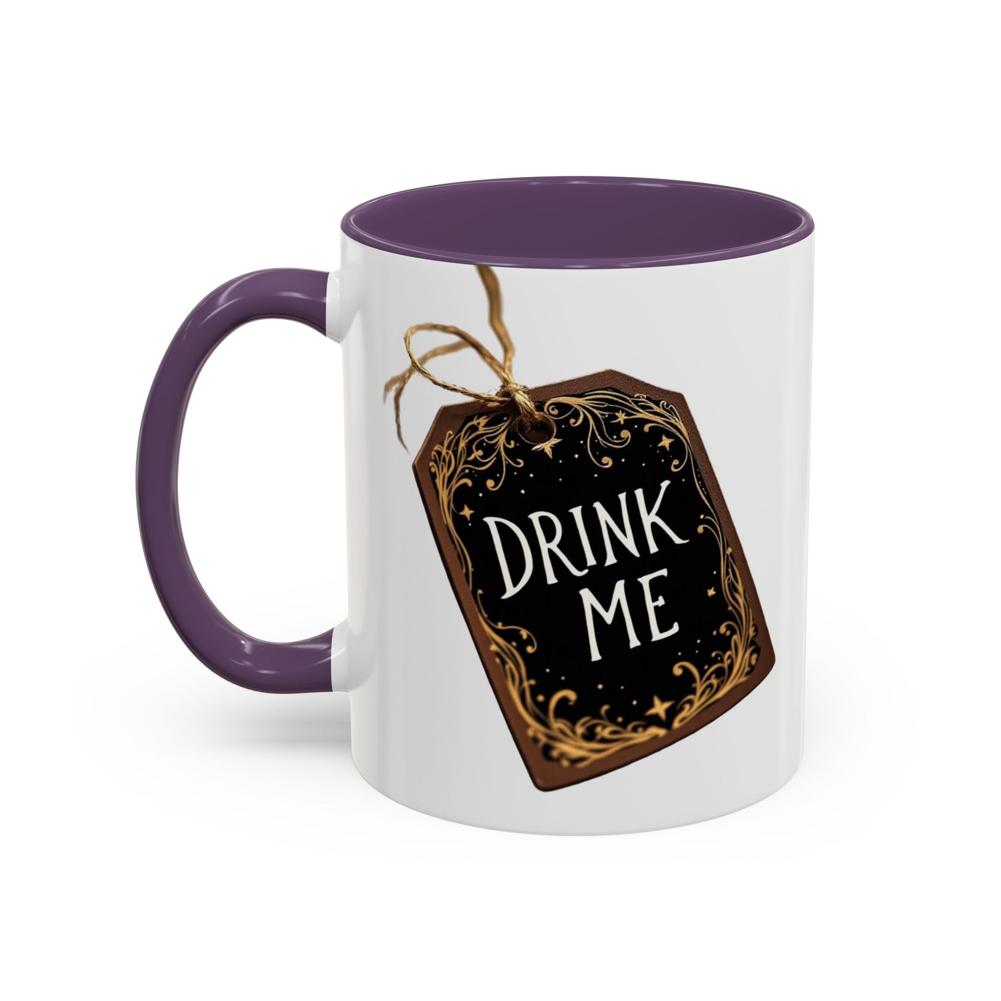 Introducing the Whimsical Drink Me Coffee Mug - Enchanting Accent Cup for Tea Lovers, where every sip becomes a delightful experience. This vibrant mug features a playful `Drink Me` tag, adding a touch of magic to your morning coffee or evening tea.