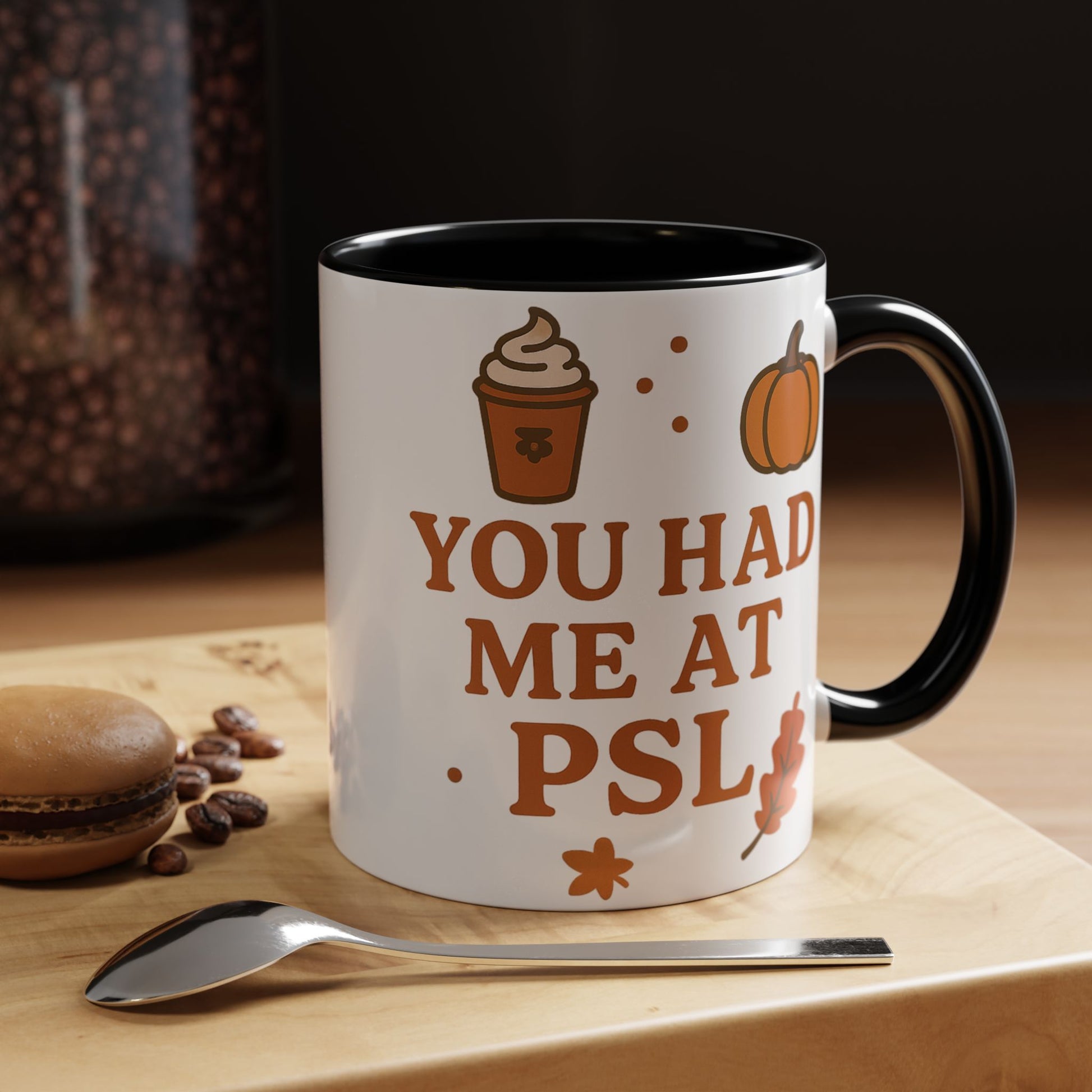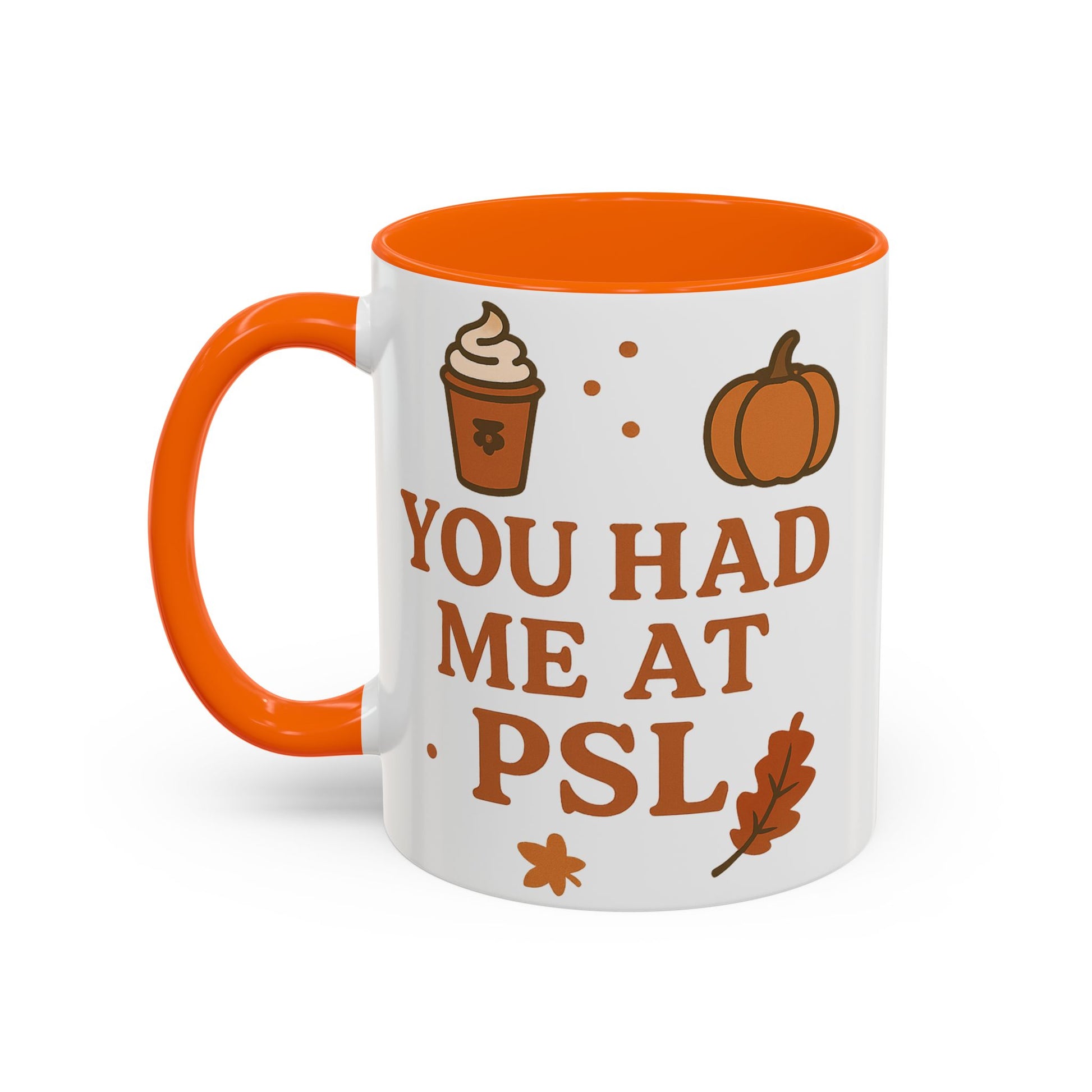 Introducing the 'You Had Me at PSL - Autumn Pumpkin Spice Mug,' a cozy coffee cup designed for fall lovers and pumpkin spice aficionados. This stylish accent coffee mug is perfect for those chilly mornings or afternoon pick-me-ups, exuding a warm and inviting vibe that enhances every sip.